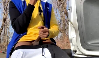 Beautiful slim boy Jon Arteen talks French, jerks off his shaved cock in the rain,