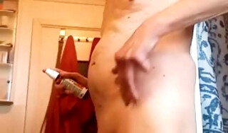 Hot Twink Jacobo Torres Jerking His Big Uncut Cock in the Shower Shooting His Cum All Over the