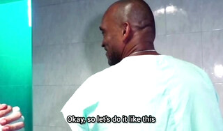 Two well-endowed black men fucking a married man with a woman. They widened his ass and